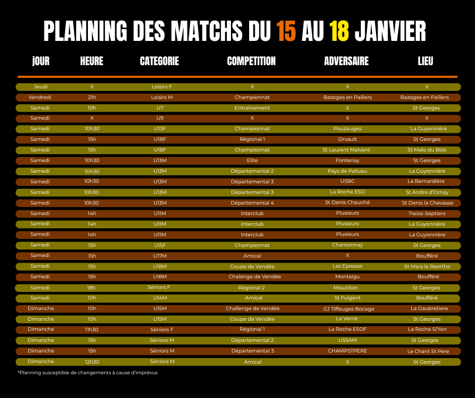 | 14 Jan | Planning Matchs du... |
